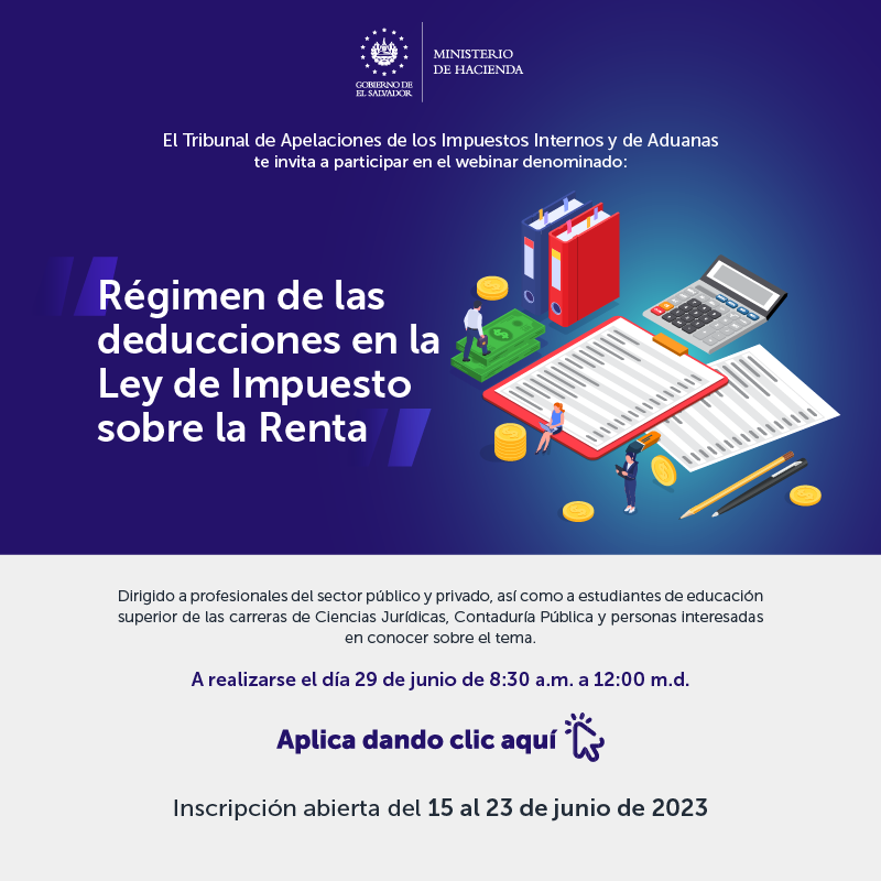 Registro de participación del webinar “ Régimen de las deducciones generales en la Ley del Impuesto sobre la Renta” del TAIIA -Ministerio de Hacienda