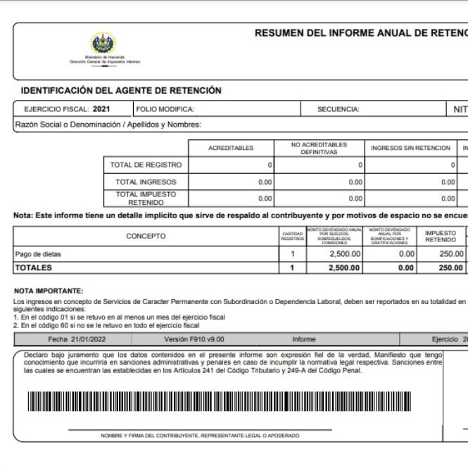 Para mayor información y consultas relacionadas con el Informe Anual de Retenciones del Impuesto Sobre la Renta puede comunicarse a Call Center: 2244-3444, al WhatApp: 7073-8510 o a los correos electrónicos: asistenciadgii@mh.gob.sv y declaracioninternet@mh.gob.sv .