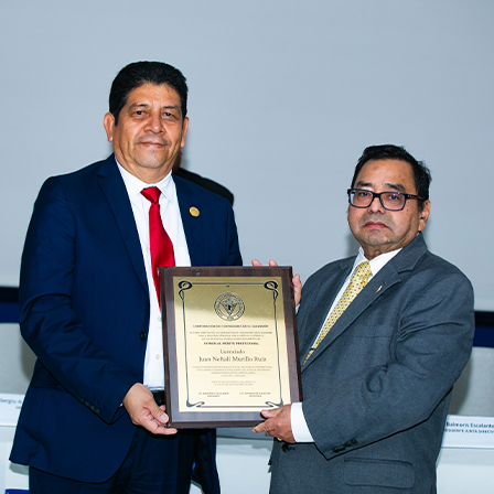 El Viceministro de Ingresos, Juan Neftalí Murillo, recibió este jueves 23 de noviembre un reconocimiento por su trayectoria académica y laboral de parte de la Corporación de Contadores de El Salvador, debido a su importante labor en el sector contable.